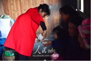 11月16日,新娘潘芝銀在給親人倒茶。