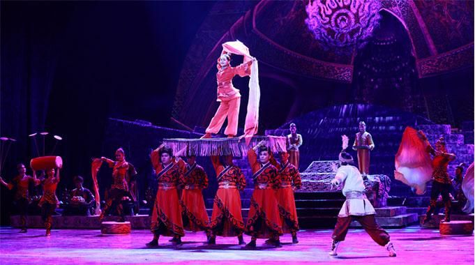 在《樓蘭尋夢》中,既有羅馬商人、波斯商人,也有西域少數(shù)民族和漢族;既可以看到阿拉伯舞蹈,也可以看到漢族的扇子舞、綢子舞。雜技劇展現(xiàn)出多民族文化的交匯融合,是中華文化兼容并蓄的生動體現(xiàn)。