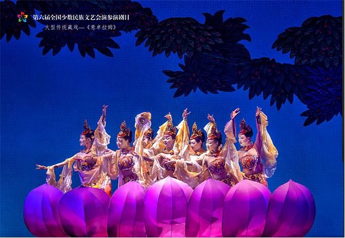 9月14日,作為第六屆全國少數民族文藝會演參演劇目,由青海省選送、青海省藏劇團(黃南藏族自治州民族歌舞劇團)創(chuàng)作演出的藏戲《意卓拉姆》在央視網和國家民委門戶網站進行演播。該劇講述了傳說中的仙女意卓拉姆與人間的諾桑王子相愛,歷經挫折與磨難后終成眷屬的愛情故事,表現出意卓拉姆對愛情的忠貞不渝和諾桑王子堅韌不拔的意志。