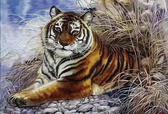 湘繡的圖案借鑒了中國(guó)畫的長(zhǎng)處,所繡內(nèi)容多為山水、人物、走獸等,尤其是湘繡的獅、虎題材,形象逼真,栩栩如生。