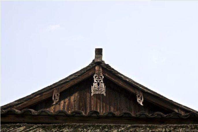 隨著時(shí)間流轉(zhuǎn),懸魚在匠人時(shí)代里閃轉(zhuǎn)騰挪,歷經(jīng)了由簡(jiǎn)到繁的造型征途,也從功能構(gòu)件升華為裝飾構(gòu)件。同舊時(shí)的其他建筑構(gòu)件一樣,懸魚在實(shí)際功用與藝術(shù)創(chuàng)造間轉(zhuǎn)徙。因此,它最先考慮了對(duì)木結(jié)構(gòu)的保護(hù),之后才生出裝飾作用等枝蔓。懸魚覆蓋在博風(fēng)板合角處的罅隙位置,不僅保護(hù)了合角處不受雨雪侵襲,同時(shí)可以美化接縫。懸掛后,也從結(jié)構(gòu)上起到了穩(wěn)定博風(fēng)板的作用,同時(shí)還庇護(hù)了檁條端頭,有效地防止了木制建筑過(guò)早斑駁。時(shí)至今日,懸魚已然成為傳統(tǒng)建筑中結(jié)構(gòu)性與裝飾性完美融合的一種構(gòu)件,更是祖先智慧的一種體現(xiàn)。