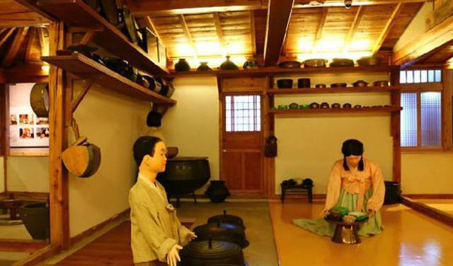 在傳統(tǒng)的朝鮮族民宅中,炕和鍋臺是平齊的,需要燒火做飯時,主婦會打開架在柜臺一側(cè)的移動木板,下到地面水平線以下的“灶坑”點(diǎn)火做飯。傳統(tǒng)的炕采用長筒式結(jié)構(gòu),煙火由一洞內(nèi)循環(huán)排出,使每洞都有煙火串入,炕即溫?zé)帷3r族的火坑高度為30-40厘米,但炕洞向下挖入,炕面抹白灰,表面糊油紙或鋪草簾子,炕面平整。隨著物質(zhì)條件的改善,炕面改鋪纖維板或者地板膠,既美觀又耐用。