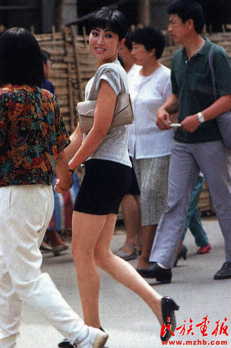 1991年,大連流行的超短裙風(fēng)韻獨(dú)具。20世紀(jì)90年代,曾經(jīng)被視為洪水猛獸的超短裙出現(xiàn),中國人對(duì)于服裝的追求越來越凸現(xiàn)個(gè)性?!睹褡瀹媹?bào)》2008年第12期