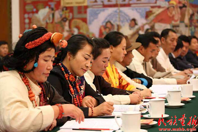 2017年10月18日,在中國共產(chǎn)黨第十九次全國代表大會(huì)上,習(xí)近平鄭重宣示:“經(jīng)過長期努力,中國特色社會(huì)主義進(jìn)入了新時(shí)代,這是我國發(fā)展新的歷史方位?!笔糯髨?bào)告中,習(xí)近平用五句話深刻揭示了新時(shí)代的內(nèi)涵,指出這個(gè)新時(shí)代,是承前啟后、繼往開來、在新的歷史條件下繼續(xù)奪取中國特色社會(huì)主義偉大勝利的時(shí)代,是決勝全面建成小康社會(huì)、進(jìn)而全面建設(shè)社會(huì)主義現(xiàn)代化強(qiáng)國的時(shí)代,是全國各族人民團(tuán)結(jié)奮斗、不斷創(chuàng)造美好生活、逐步實(shí)現(xiàn)全體人民共同富裕的時(shí)代,是全體中華兒女勠力同心、奮力實(shí)現(xiàn)中華民族偉大復(fù)興中國夢(mèng)的時(shí)代,是我國日益走近世界舞臺(tái)中央、不斷為人類作出更大貢獻(xiàn)的時(shí)代。圖為席黨的十九大的西藏自治區(qū)代表團(tuán)代表在討論十九大報(bào)告。《民族畫報(bào)》2017年第11期