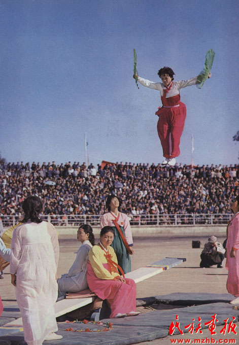 1982年9月2日至8日,第二屆全國少數(shù)民族傳統(tǒng)體育運(yùn)動(dòng)會(huì)在內(nèi)蒙古呼和浩特舉行,圖為朝鮮族婦女展示傳統(tǒng)游戲項(xiàng)目——跳板。全國少數(shù)民族傳統(tǒng)體育運(yùn)動(dòng)會(huì)發(fā)掘了一大批新項(xiàng)目,并在探索普及與提高結(jié)合、群眾性與專業(yè)化結(jié)合、傳統(tǒng)體育與現(xiàn)代體育結(jié)合、民族性與世界性結(jié)合的道路上取得了可喜的進(jìn)步,使少數(shù)民族傳統(tǒng)體育走上了普及、提高、規(guī)范、科學(xué)的道路。目前全國少數(shù)民族傳統(tǒng)體育運(yùn)動(dòng)會(huì)已經(jīng)舉辦了十屆《民族畫報(bào)》1982年第12期