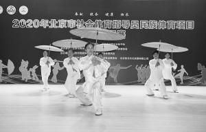 2020年北京市社會(huì)體育指導(dǎo)員民族體育項(xiàng)目交流展示賽日前在北京市民族文化交流中心舉辦,來自全市16個(gè)區(qū)的40支代表隊(duì)交流展示了民族健身操、舞龍、太極拳等項(xiàng)目。