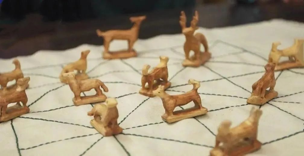 蒙古鹿棋,是蒙古族民間典型的棋藝之一。棋子模擬狗和鹿的角逐過程,這與蒙古族人民的生活習(xí)俗密切相關(guān),可以說是當(dāng)時蒙古族人民勞作之余重要的娛樂活動。