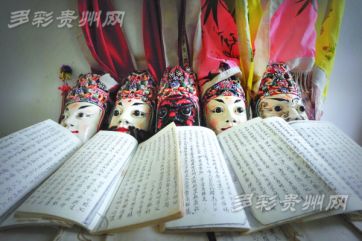 保存完好的安順地戲臉鐠及地戲譜。