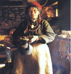 打酥油的藏族老阿媽