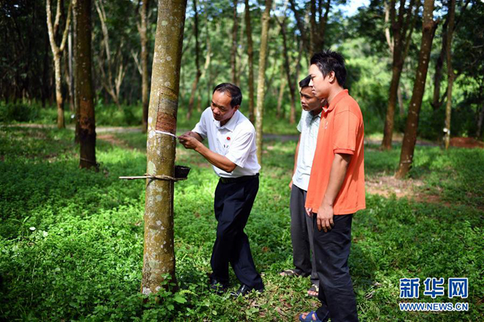 村民不想種,羊風(fēng)極和黨員干部們帶頭種;沒(méi)錢(qián),他到鎮(zhèn)里、縣上跑扶貧種苗,幫助貸款;沒(méi)技術(shù),他邀請(qǐng)熱科院專家前來(lái)給村民們培訓(xùn)橡膠管理和割膠技術(shù)。廣泛宣傳和示范帶動(dòng)加上熱心的服務(wù),村民們開(kāi)始跟著他種植橡膠樹(shù)。如今,全村的山地基本上都種上了橡膠樹(shù),僅此一項(xiàng),去年村民人均收入就達(dá)約6000元。