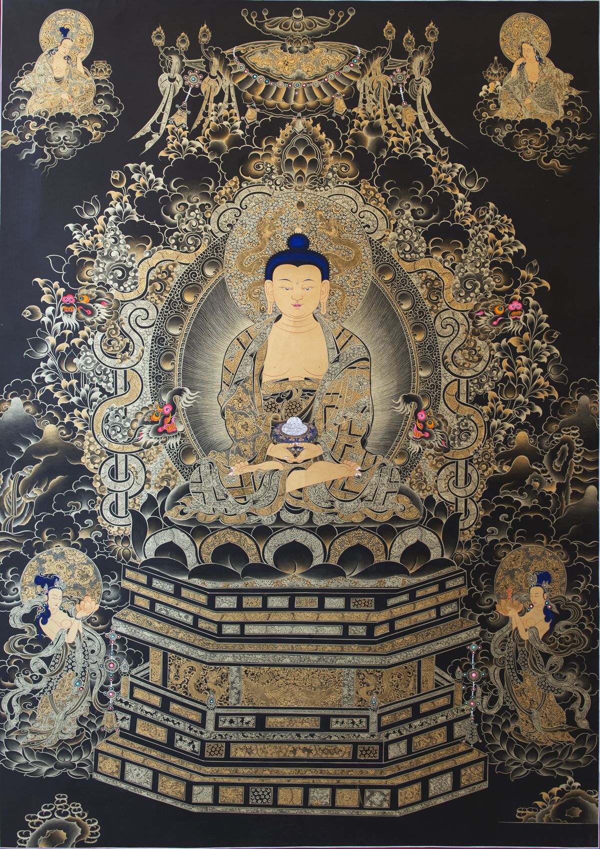 阿彌陀佛(梵語Amitābha),又名無量佛、無量光佛、無量壽佛等。大乘經(jīng)載,阿彌陀佛在過去久遠(yuǎn)劫時(shí)曾立大愿,建立西方凈土,廣度無邊眾生,成就無量莊嚴(yán)功德,為大乘佛教所廣為崇敬和弘揚(yáng)。大乘佛經(jīng)主要如《無量壽經(jīng)》、《阿彌陀經(jīng)》、《觀無量壽佛經(jīng)》,對阿彌陀佛及其西方極樂世界均有詳述。大乘佛教流傳之地,如中國、日本等大乘教區(qū),阿彌陀佛信仰也尤為繁盛和重要。而漢傳佛教的凈土宗,則完全以往生阿彌陀佛的西方凈土作為專修的法門。