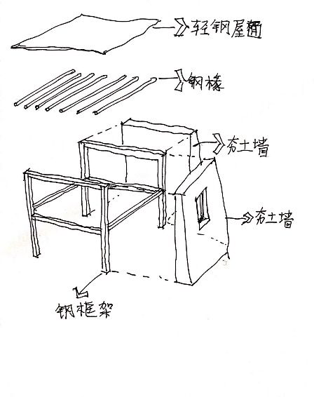 鋼結(jié)構(gòu)與夯土墻相結(jié)合(作者自繪)