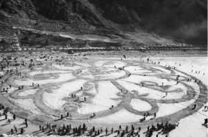 每年冬季,世居通天河流域的藏族同胞依當?shù)貍鹘y(tǒng),以“沙為墨冰為紙”,在冰封的通天河面上書寫巨大的“六字真言”“吉祥八寶”圖案,以祈求新的一年世界和平、五谷豐登、六畜興旺。