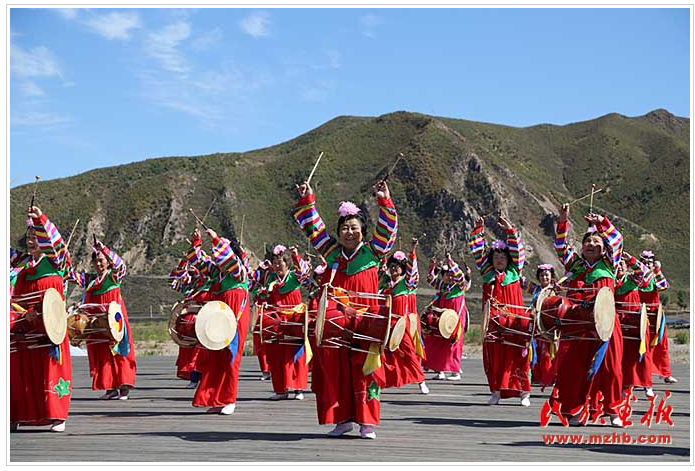 圖們市,隸屬于吉林省延邊朝鮮族自治州,位于吉林省東部,長白山脈東麓。圖們市的圖們江廣場環(huán)境幽雅,綠樹成蔭,廣場內(nèi)鼓聲隆隆、彩裙飄飄,近百位身著朝鮮族服裝的老人們斜挎長鼓,翩翩起舞。鼓聲的鏗鏘映襯老人綻放的笑臉,一種“延邊特色”的幸福感便撲面而來。與朝鮮南陽市隔江相望的圖們江畔第一城圖們市以民族傳統(tǒng)文化為媒,奏響了文化興邊新樂章。