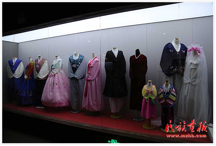 展廳最后一個展區(qū)是朝鮮族服飾展柜,素凈、淡雅的朝鮮族傳統(tǒng)服飾