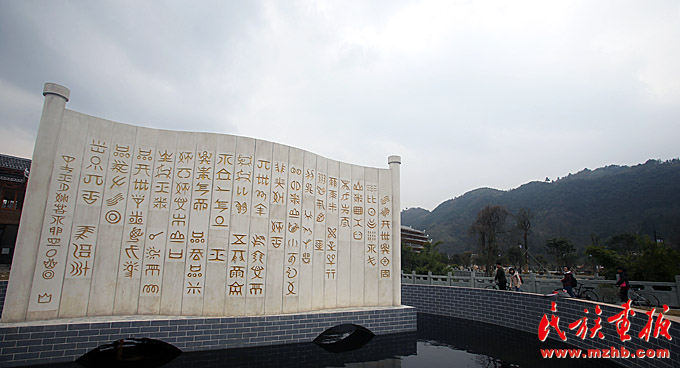 姑掛水族文化體驗區(qū)前的水書石碑