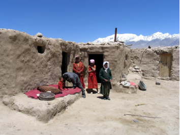 塔吉克族的房屋一般為土木結(jié)構(gòu)正方形的平屋頂,塔吉克語(yǔ)叫做“藍(lán)蓋力”。塔吉克族的房屋雖然沒(méi)有窗戶,但屋頂中央都會(huì)開(kāi)有天窗。