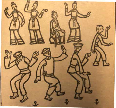 兄弟三人帶上放羊尕娃,一起又回到山里,見了阿奶和媳婦們。告知殺了九頭妖怪,大家又唱又跳。從此,他們在這里過著幸福的生活。