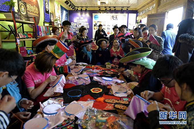 土族人的盤繡歷史悠久,工藝獨(dú)具匠心,有較高的文化價(jià)值,2006年被列入第一批國家級非物質(zhì)文化遺產(chǎn)名錄。盤繡源于青海省互助土族自治縣,十八大以來,互助縣土族自治縣將勞動力培訓(xùn)轉(zhuǎn)移和市場需求結(jié)合起來,發(fā)展具有地方民族特色的土族盤繡培訓(xùn)項(xiàng)目,把發(fā)展土族盤繡作為擴(kuò)大農(nóng)村婦女增收就業(yè)的渠道之一。目前,全縣有2萬余名婦女從事土族盤繡工藝品的制作,使盤繡這一古老的手工藝得到傳承和發(fā)展,通過一針一線間實(shí)現(xiàn)了土族文化與世界文化的交流。