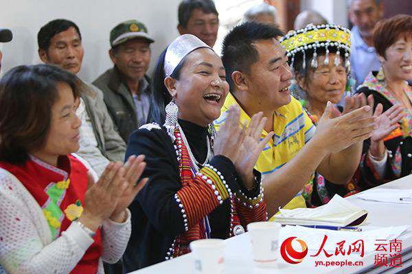 宣講現(xiàn)場(chǎng),百姓們不時(shí)打斷楊娜的話,詢問(wèn)自己關(guān)心的問(wèn)題。十九大代表?xiàng)钅仁瞧斩形髅丝h民族文化工作隊(duì)的一名隊(duì)員,開(kāi)完十九大回到西盟后,她就一直在想,該用什么樣的方式才能把在北京看到的、聽(tīng)到的、感受到的“十九大”傳遞給父老鄉(xiāng)親。