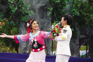 72歲高齡的布依族舞蹈家羅星芳(國家一級(jí)演員)和望謨布依女兒、中國海政歌舞團(tuán)曾小燕(國家二級(jí)演員)為大家同臺(tái)演繹布依經(jīng)典民歌“好花紅
