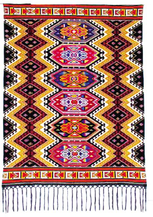 在長期的藝術(shù)實(shí)踐中,葉水云感到自己的專業(yè)美術(shù)水平有限。于是,她考入鳳凰職業(yè)中專學(xué)習(xí)美術(shù)專業(yè),并被留校任教,后又在湘西州教育學(xué)院進(jìn)修大學(xué)美術(shù)專業(yè)?!巴良铱楀\沒有草稿,最重要的一個(gè)環(huán)節(jié)就是配色。以前配色沒有理論指導(dǎo),主要從個(gè)人感覺出發(fā),喜歡紅、綠等艷色系。除了講究圖案平整以外,配得好不好自己也不清楚。學(xué)習(xí)后才慢慢認(rèn)識(shí)到,配色應(yīng)注重冷暖色調(diào)的對(duì)比與襯托。”所以,葉水云織出來的“西蘭卡普”色彩更為統(tǒng)一調(diào)和,艷而不俗,粗獷中有細(xì)節(jié),大氣中有精巧,看上去更加舒服。
