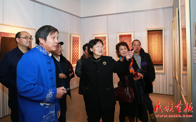 座談會(huì)上,中國民族博物館副館長張志文介紹說:土家族是一個(gè)古老的民族,有著4000多年的文明發(fā)展史。土家族在全國有2個(gè)自治州、8個(gè)自治縣,人口達(dá)835萬。土家織錦從秦漢時(shí)期萌芽,歷經(jīng)賨布、溪布、斑布、土錦等幾個(gè)發(fā)展階段,在明、清時(shí)期開始定型,至今已有2000余年的燦爛歷史。中紀(jì)委駐財(cái)政部紀(jì)檢組原組長、全國婦女手工編織協(xié)會(huì)副會(huì)長賀邦靖說:土家織錦是土家婦女智慧的結(jié)晶,是武陵山區(qū)文化精準(zhǔn)扶貧的重點(diǎn)項(xiàng)目之一。從這個(gè)展覽上我們不僅可以看到土家織錦的燦爛與美麗,還可以看到國家實(shí)施文化精準(zhǔn)扶貧的實(shí)效。
