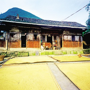 聚居石阡的仡佬族民居為不封閉的院落式,即三合院式。主房是建在高臺基上的瓦房,兩側(cè)廂房是干欄式吊腳樓,樓下為畜圈、存燒柴處,樓上住人,放置糧食和雜物,所形成的院落都鋪著石板,以利秋收時(shí)作曬場。