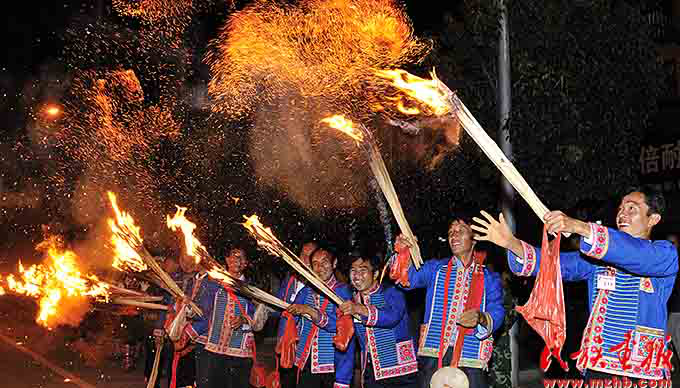 火把節(jié)是彝族傳統(tǒng)節(jié)日中最普遍、最隆重、最富有民族特色的節(jié)日,一般在農(nóng)歷六月二十四至二十六舉行,楚雄彝族火把節(jié)于2006年5月經(jīng)國(guó)務(wù)院批準(zhǔn)為第一批國(guó)家級(jí)非物質(zhì)文化遺產(chǎn)保護(hù)項(xiàng)目。節(jié)日內(nèi)容集民俗活動(dòng)、經(jīng)貿(mào)活動(dòng)、文體活動(dòng)和社交活動(dòng)于一體,像磁石一樣吸引著各族群眾,許多人就是通過(guò)參加火把節(jié)認(rèn)識(shí)了彝族,知道了楚雄彝族自治州的。節(jié)日期間,各族人民載歌載舞,?;鸢选⒎叛婊?,火把節(jié)成了弘揚(yáng)彝族文化、促進(jìn)對(duì)外交流、開(kāi)展經(jīng)貿(mào)活動(dòng)和各族人民大團(tuán)結(jié)的盛會(huì)。