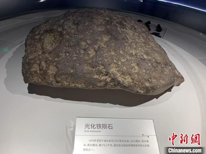 據(jù)介紹,湖北省共發(fā)現(xiàn)7處隕石地點(diǎn)。1976年,湖北光化縣(今老河口)發(fā)生隕石雨,這塊隕石就是地質(zhì)工作者當(dāng)時(shí)在光化縣找到的。