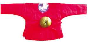 滿族傳統(tǒng)式樣大襟小棉襖 佟塔塔(參展人): 2012年,94歲高齡的奶奶親手為我腹中的嬰兒縫制了這件衣服。紅布做面兒,顏色鮮亮喜慶;純棉布做里兒,軟軟的不怕磨了孩子的皮膚;自家的棉花勻勻地絮了一層,暖暖和和;大襟兒把肚子蓋了兩層,不怕涼了小肚子;紐襻兒是系帶的,怕扣子硌了孩子。