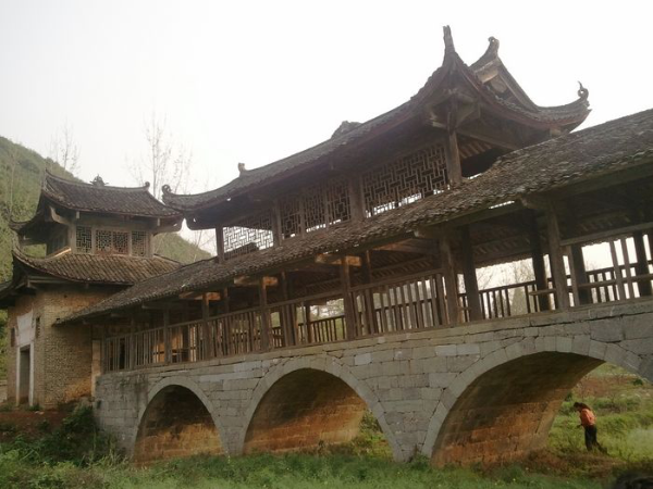 瑤族風(fēng)雨橋,又被稱之為“涼橋”或“風(fēng)水橋”。除木橋外,大多是在石拱橋上加蓋橋廊、橋亭和在橋頭的橋臺上建閣樓,穿斗式木構(gòu)架,二層檐或三層檐,有的四層檐,通高在9米~10米間。風(fēng)雨橋不僅是路人避雨之處,也是瑤族男女青年談情說愛的約會場所。廣西瑤族風(fēng)雨橋主要集中在富川瑤族自治縣和恭城瑤族自治縣。富川縣保存至今的古代瑤族風(fēng)雨橋有18座,其中著名的有迥瀾橋(建于明萬歷年間),青龍橋(與前者同時期修建),以及福壽橋、高橋、鳳溪新橋、皇侯泉橋、東轅橋、鸕鶿塘瀾通橋、龍歸橋、興隆橋等。