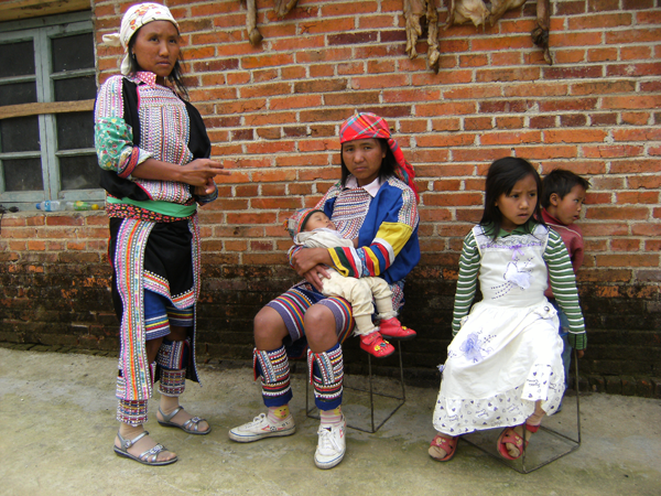 相對來說,男子服飾除包黑色包頭上沒有什么特別。但喜歡紋身,其中多數(shù)在胸脯刺牛頭,手腕刺鳥,腿上刺山林圖案。外出,常挎花布袋,佩戴長刀或火槍,給人以雄壯威武之感。
