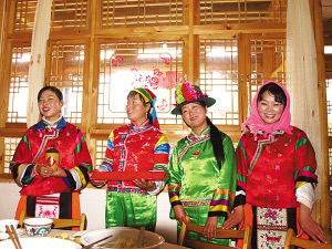 隨著時代的更替,土族女性的服飾發(fā)生了很大變化,有的傳統(tǒng)服飾已消失,有的服飾經(jīng)過推陳出新,重放光彩。如舊時的繡花高領(lǐng),如今變成直翻兩用領(lǐng);蓋在“扭達”上的長頭巾——“扭達爾秀巾”,變成了今日土族女性使用的短頭巾。現(xiàn)今,廣大土族女性,不僅喜穿本民族服飾,而且還愛著時尚服飾,她們或使土族服飾時裝化,或使時裝土族服飾化,豐富了土族的服飾文化。