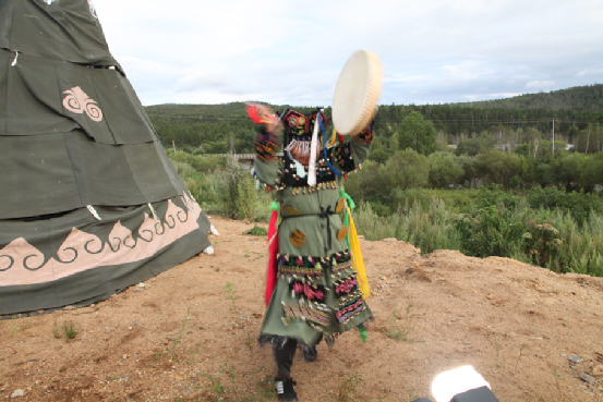 鄂倫春族薩滿(mǎn)舞表演。方征攝于新生鄉(xiāng),2013年8月