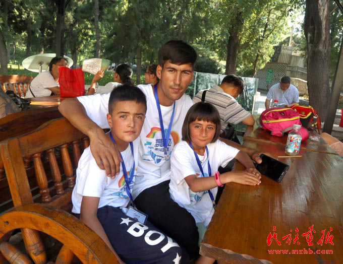 在全國各地的支援下,塔吉克族學(xué)生和老師有機(jī)會(huì)走出大山,出外看看,這是師生三人在北京(娘吉加 攝影)
