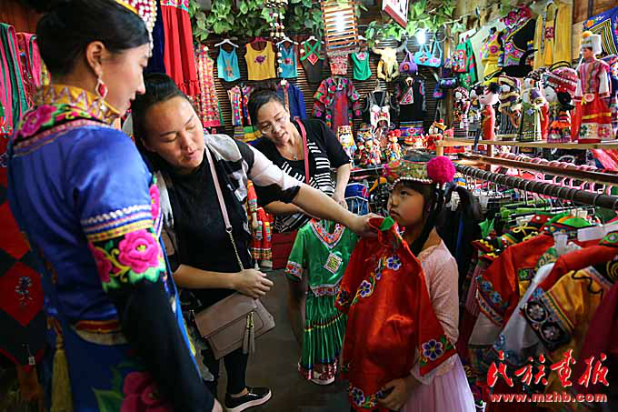 幫顧客挑選民族服飾的同時(shí)向顧客介紹民族文化