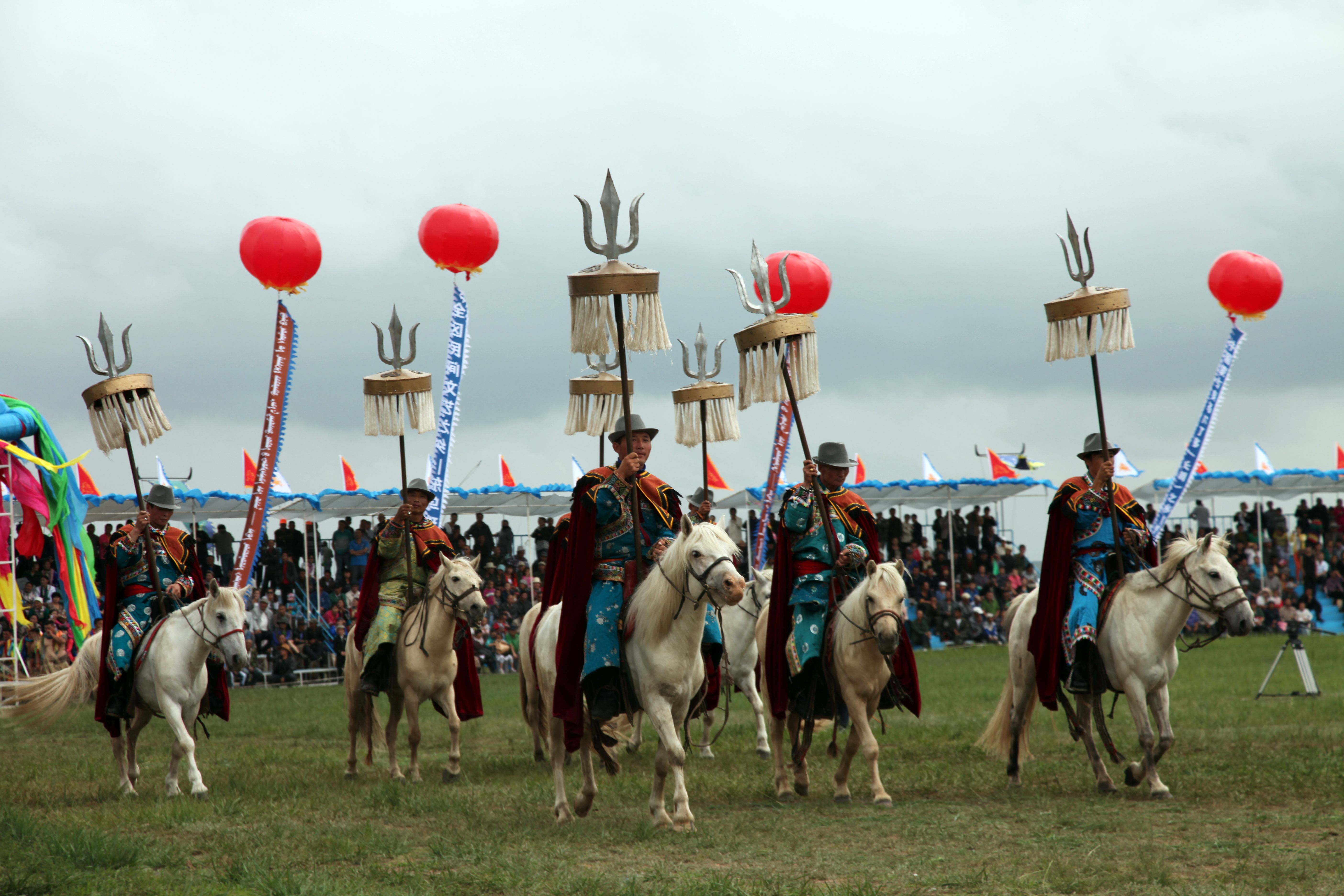 圖片說明:蒙古族體育比賽馬隊(duì)進(jìn)場