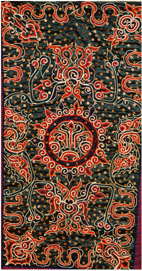 正因馬尾繡的工藝獨特,蘊含著豐富的文化內(nèi)涵,2006年水族馬尾繡入選第一批國家級非物質(zhì)文化遺產(chǎn)名錄。而馬尾繡背兒帶更是將水族馬尾繡的藝術(shù)價值體現(xiàn)得淋漓盡致。民族文化宮博物館所藏的這件馬尾繡背兒帶,刺繡精美,展現(xiàn)了水族婦女嫻熟的刺繡技藝,是研究水族民俗、民風(fēng)、圖騰崇拜等民族文化的珍貴藝術(shù)資料。