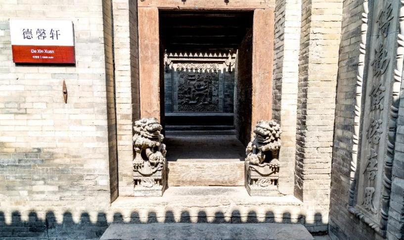 正廳大門之上的門楣,是一塊精美絕倫的木雕,采用雕、嵌、描、繪等多種裝飾技法,將喜鵲鬧春的場(chǎng)景表達(dá)得惟妙惟肖,具有極高的藝術(shù)價(jià)值;除了雕刻著代表中國(guó)傳統(tǒng)文化精神的梅蘭竹菊外,許多地方的門窗,尤其是專供男孩子們讀書的庭院中的窗子,都雕成簡(jiǎn)潔古樸的書本或折扇的形狀,表達(dá)了“萬般皆下品,唯有讀書高”的文化追求。