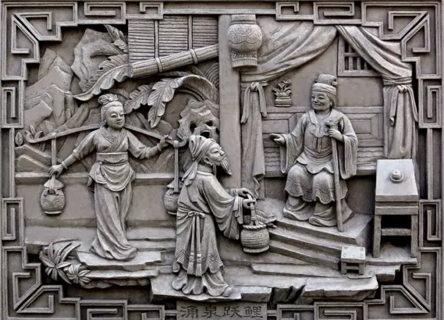 磚雕指在青磚上雕出山水、花卉、人物等圖案,是古建筑雕刻中很重要的一種藝術(shù)形式。