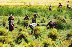 然烏湖邊瓦巴村的村民在勞作