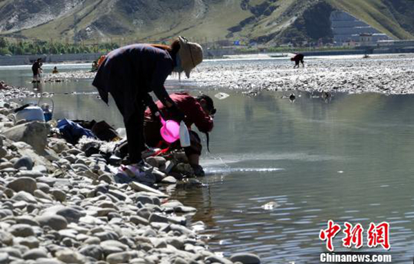 37歲的藏族青年旦增跟記者開玩笑,“自己看上去比實(shí)際年齡年輕,就是因?yàn)槟昴甓紒磴逶?。”他覺得藏族民眾初秋過“沐浴節(jié)”,能夠提高抵抗力,與內(nèi)地所講的“春捂秋凍”本質(zhì)相同。旦增介紹說,不能在流水中過“沐浴節(jié)”的藏族民眾,會(huì)在月光照過的盆中凈水洗頭。