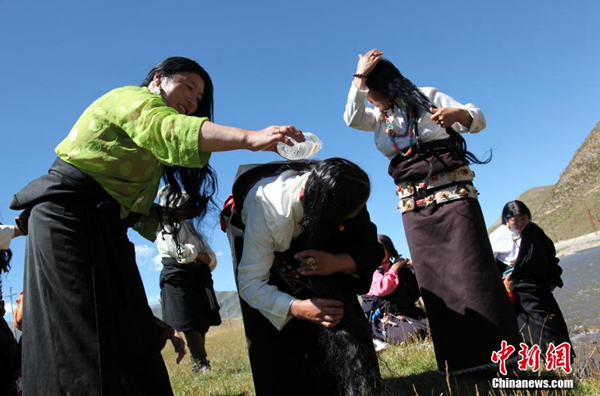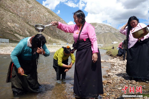 每年的夏末秋初,藏族同胞迎來一年一度的“沐浴節(jié)”?!般逶」?jié)”,藏語稱為“嘎瑪日吉”,為期7天。這項(xiàng)古老習(xí)俗已經(jīng)延續(xù)了800多年。西藏流傳民謠,“待到棄山星升起,清凈溫暖好沐浴。”也就是說,在“棄山星(金星)””照亮雪域高原的七天里,藏族民眾在星光照耀過的水流中沐浴,可祛除身體病痛、心理雜念,全年健康。