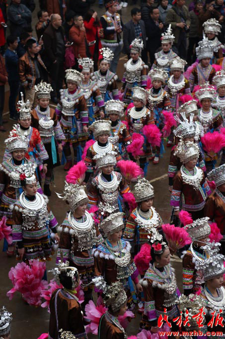 “‘打同年’活動現(xiàn)在是一年一個樣,從參加活動的苗族同胞服裝上的變化就能感到大家生活水平的提高。”廣西壯族自治區(qū)融水苗族自治縣蘆笙協(xié)會會長鳳紹明興奮地說道。