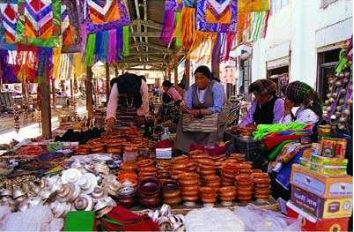 西藏的地勢西北高而東南低,西北寒冷而東南溫和,西北以牧業(yè)為主,東南以農(nóng)業(yè)為本,西北以皮袍御寒,東南多以氆氌裝遮體。皮袍和氆氌裝質(zhì)地不同,但都結(jié)構肥大,袖口寬敞,穿著自如,白天陽光充足,氣溫高時,可脫袖露臂,調(diào)節(jié)體溫,夜間可解帶和衣而眠。皮袍和氆氌裝一般均用腰帶,男子穿時提起下擺與膝平齊,腰帶一束,懷里形成空囊,里面可裝不少隨身用品。只要出門,懷中一般必有一件不可缺少的東西,就是木碗。一般的木碗價廉物美,平民百姓承受的起,更重要的原因還有與不共碗習俗有關。