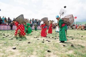 當(dāng)然,后來那達(dá)慕增加了許多新項目,比如賽駱駝、提水、縫蒙古袍扣子、撿牛糞、打斷牛骨比賽、蒙古象棋比賽、沙嘎(羊拐)比賽等。在北京舉辦的那達(dá)慕里,還融入了現(xiàn)代三大球類比賽項目,為了集體參與,增加了拔河比賽、扔沙包、服飾比賽、兒童說蒙古語比賽、兒童唱歌比賽等。
