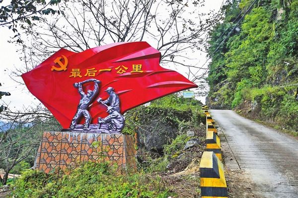 西灑鎮(zhèn)巖頭村,道路旁高聳的峭壁上鐫刻著兩個鮮紅大字——“實干”。“歷時12年,我們在懸崖峭壁上硬生生劈出了4米寬進村路!”村民小組長李華明說,現(xiàn)在正與村民謀劃開辦“最后一公里”農家飯莊,村里的“最后一公里”展覽館也正在建設。