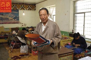 赤列塔青成年后,適逢西藏實行民主改革,拉薩市城北區(qū)的夏薩蘇和沖賽康各成立了一家“鞋業(yè)互助社”,八位鞋匠師傅每人掏50元錢入股,赤列塔青父子就這樣成了互助社的第一批成員?!昂髞淼氖虑樽兊煤軓?fù)雜!”赤列塔青說。從企業(yè)名稱和辦公地點的多次變更,可以了解到搞民族手工業(yè)不是一件容易的事情。西藏平叛后這個鞋業(yè)互助社改名勝利合作社,后來又叫前進鞋帽合作社,再后來改叫城關(guān)區(qū)鞋一廠,現(xiàn)在的名字是彩泉民族手工業(yè)公司。原來的廠址在老沖賽康附近,后來搬到木鹿寺后面,現(xiàn)在駐進城北的佳村曲美,廠名變了,地址變了,不變的是人。赤列塔青認(rèn)為,只要人在,企業(yè)就有希望。