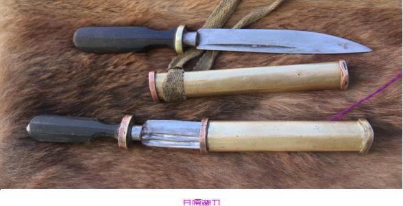 旦嘎藏刀在西藏是比較有名的,刀身是以鋼材鍛制而成,通過手工精心加工,刀刃鋒利,刀面凈光。規(guī)格為短刀和小刀兩種。短刀約四十厘米左右,小刀則僅有十幾厘米長,具有很強的地方特色,主要是防身和日常生活中吃肉為主。刀把多用以牛角或牛骨制成,刀鞘多數是包黃銅、白銅,還有白銀,上面一般沒有圖案,也沒有鑲嵌各種寶石、鍍金等,顯得很別致。